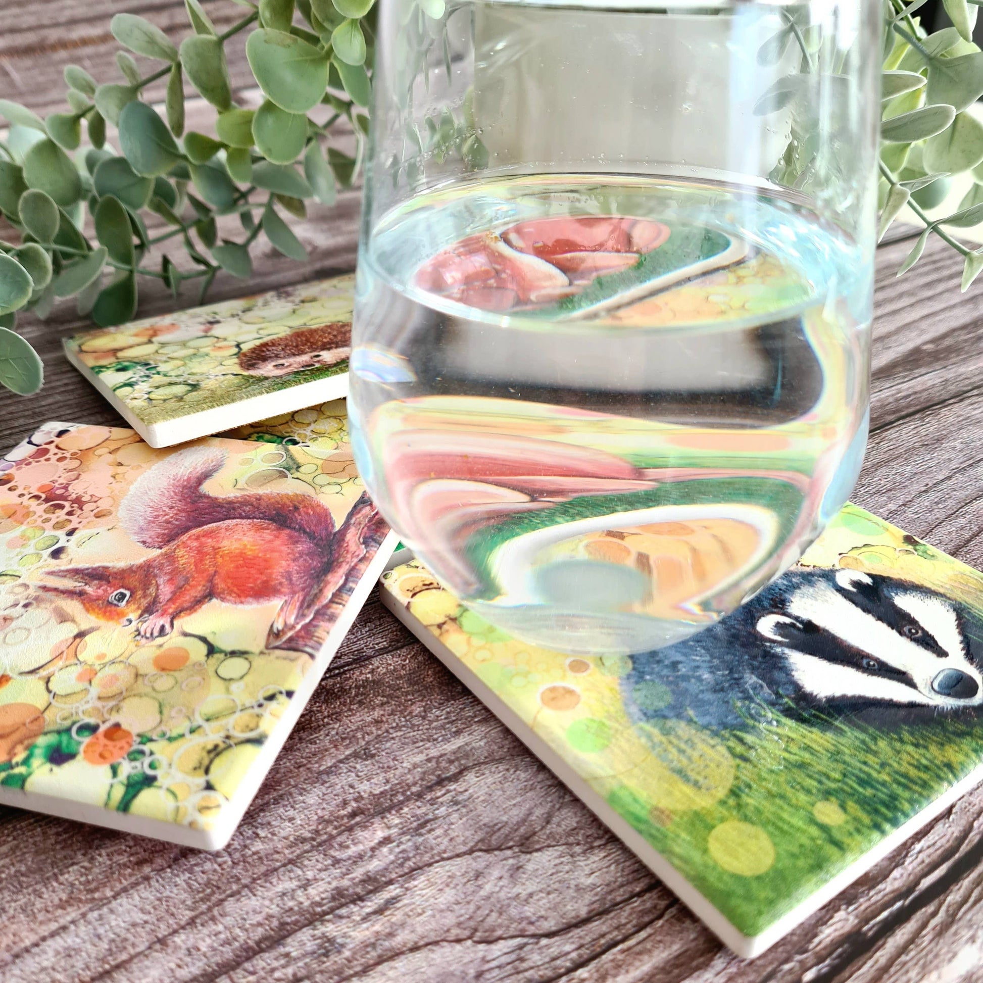 Each coaster measures 10cm square and comes with a cork back to prevent movement or scratching on the unit/ table and comes with an embossed texture, making them almost 3D like.