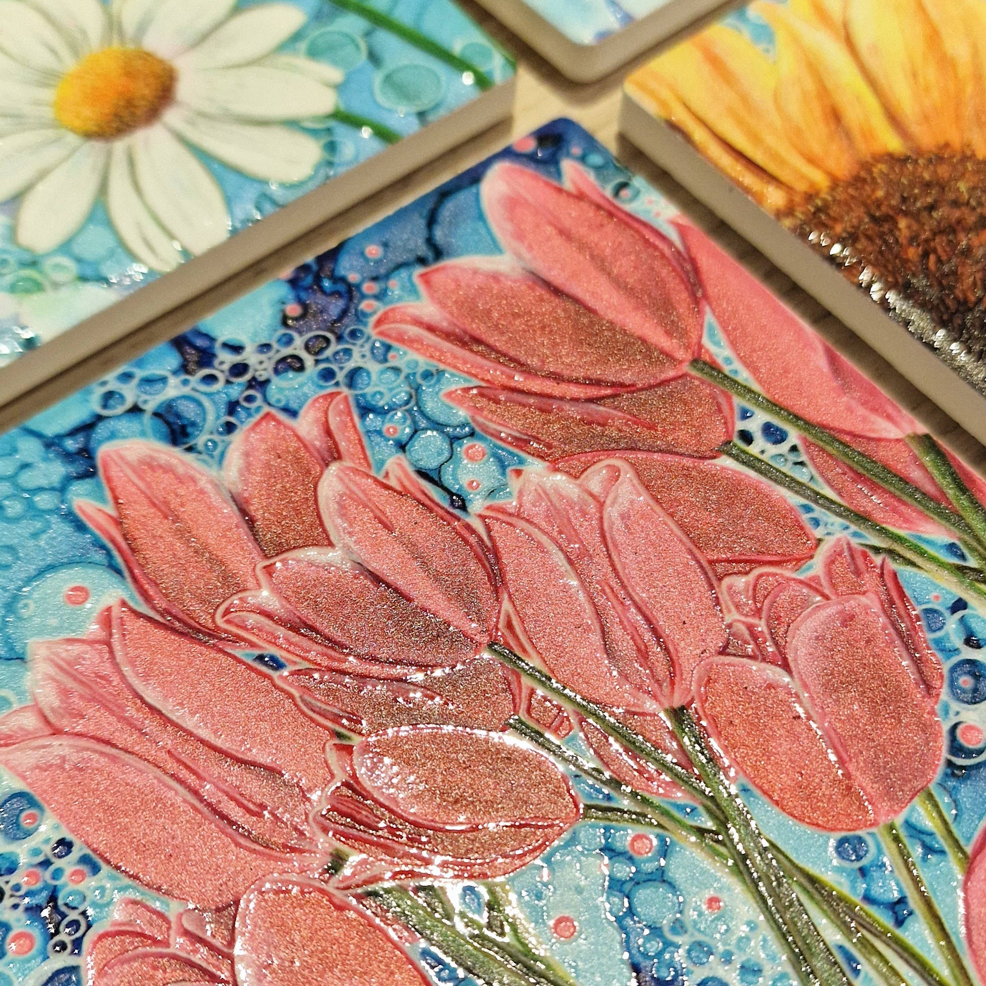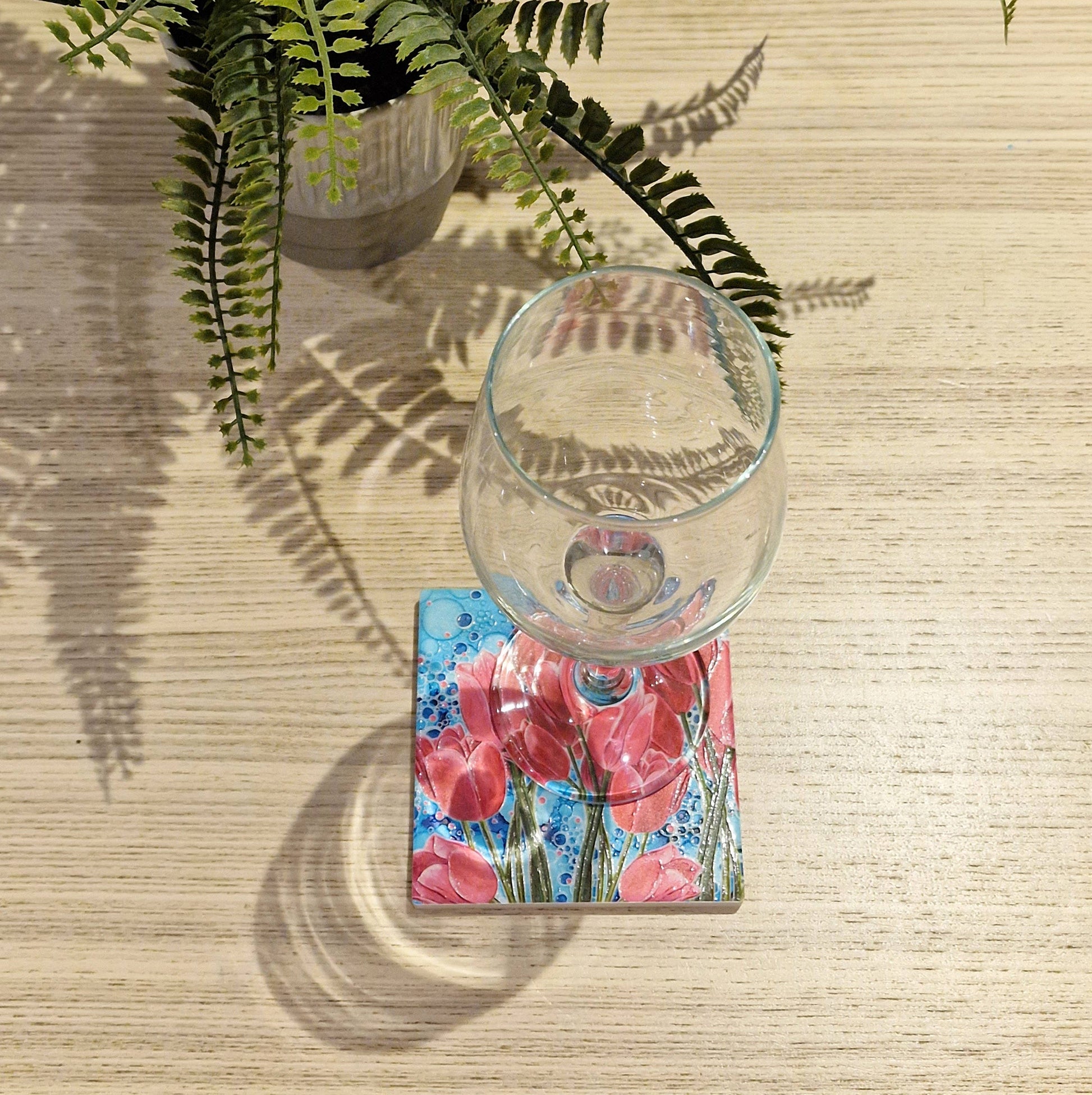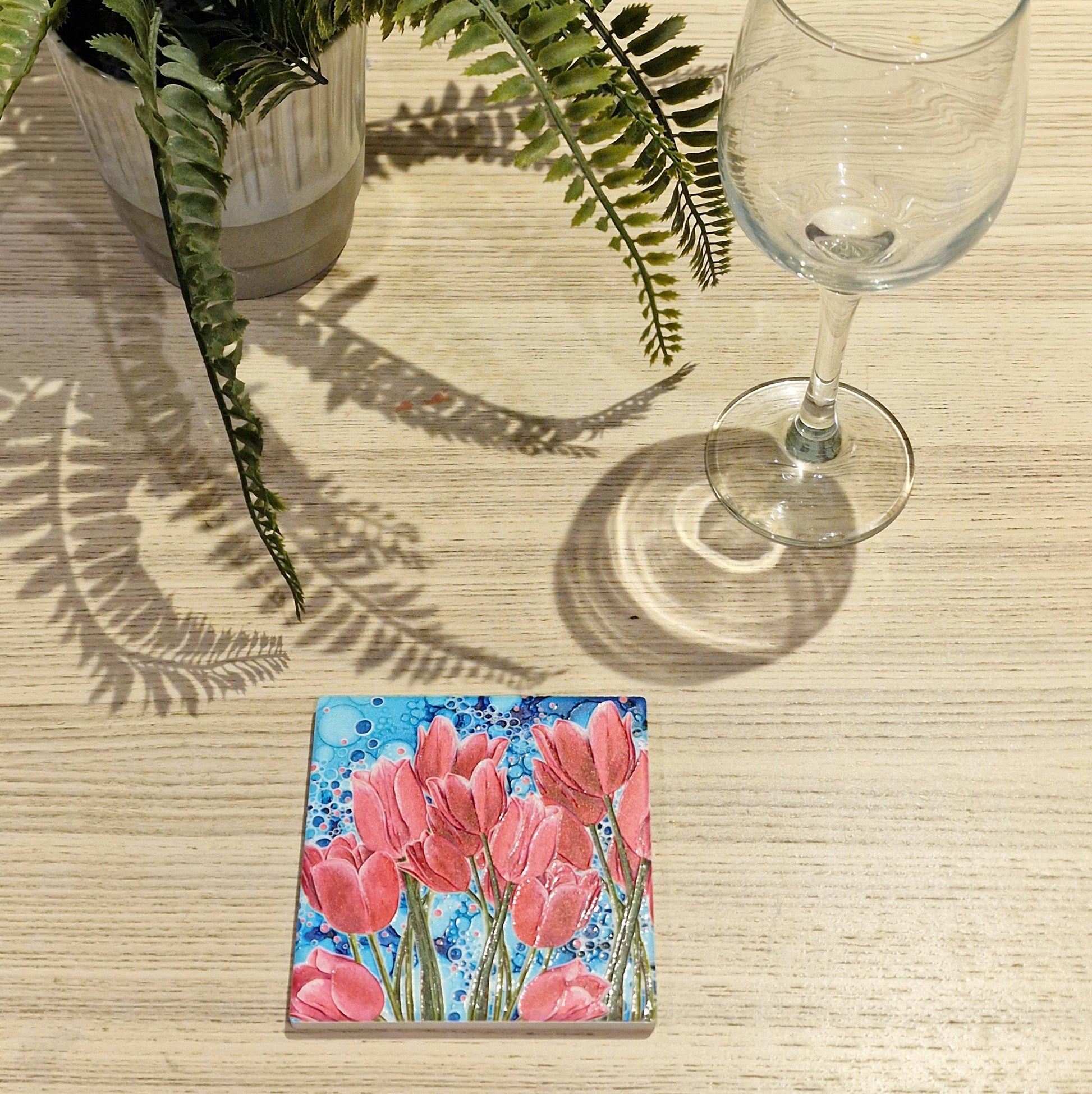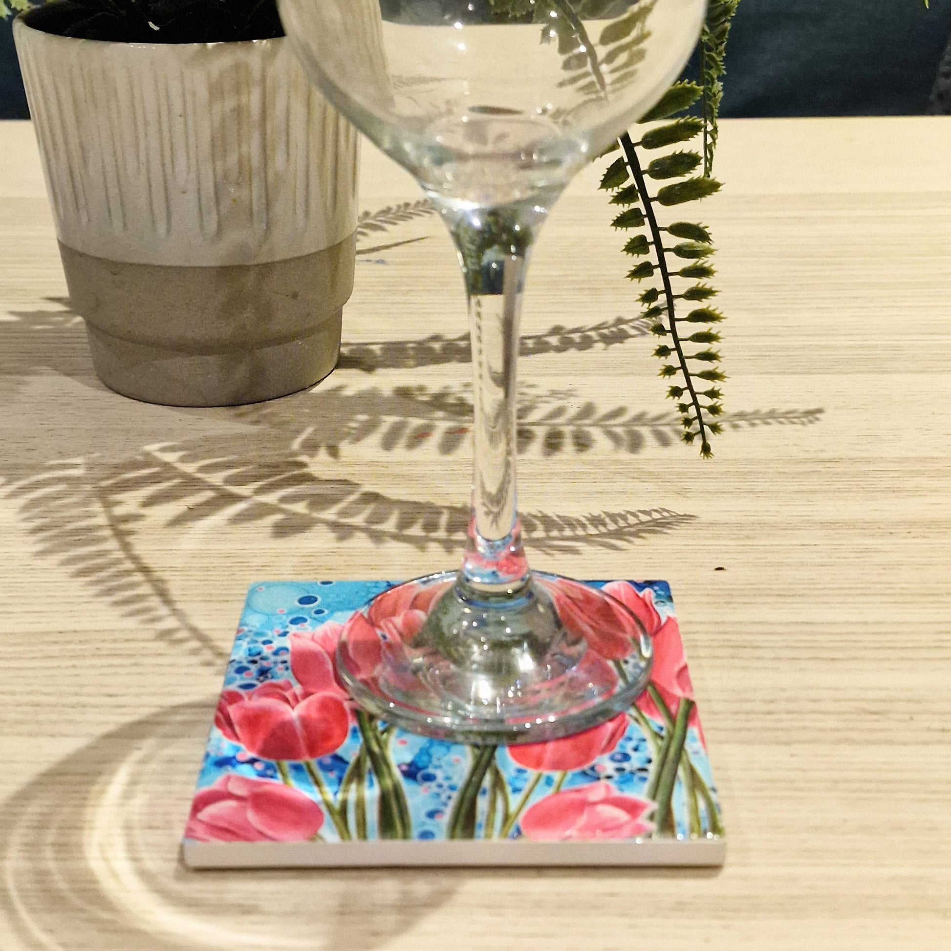 Each coaster measures 10cm square and comes with a cork back to prevent movement or scratching on the unit/ table and comes with an embossed texture, making them almost 3D like.