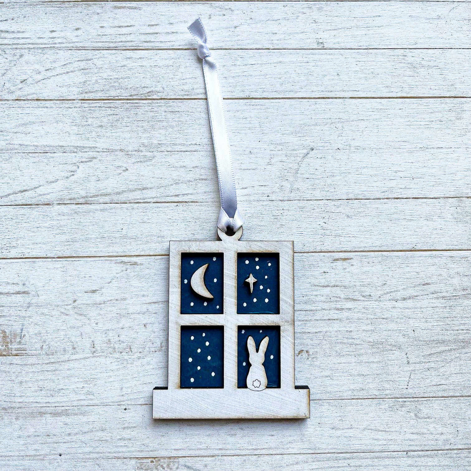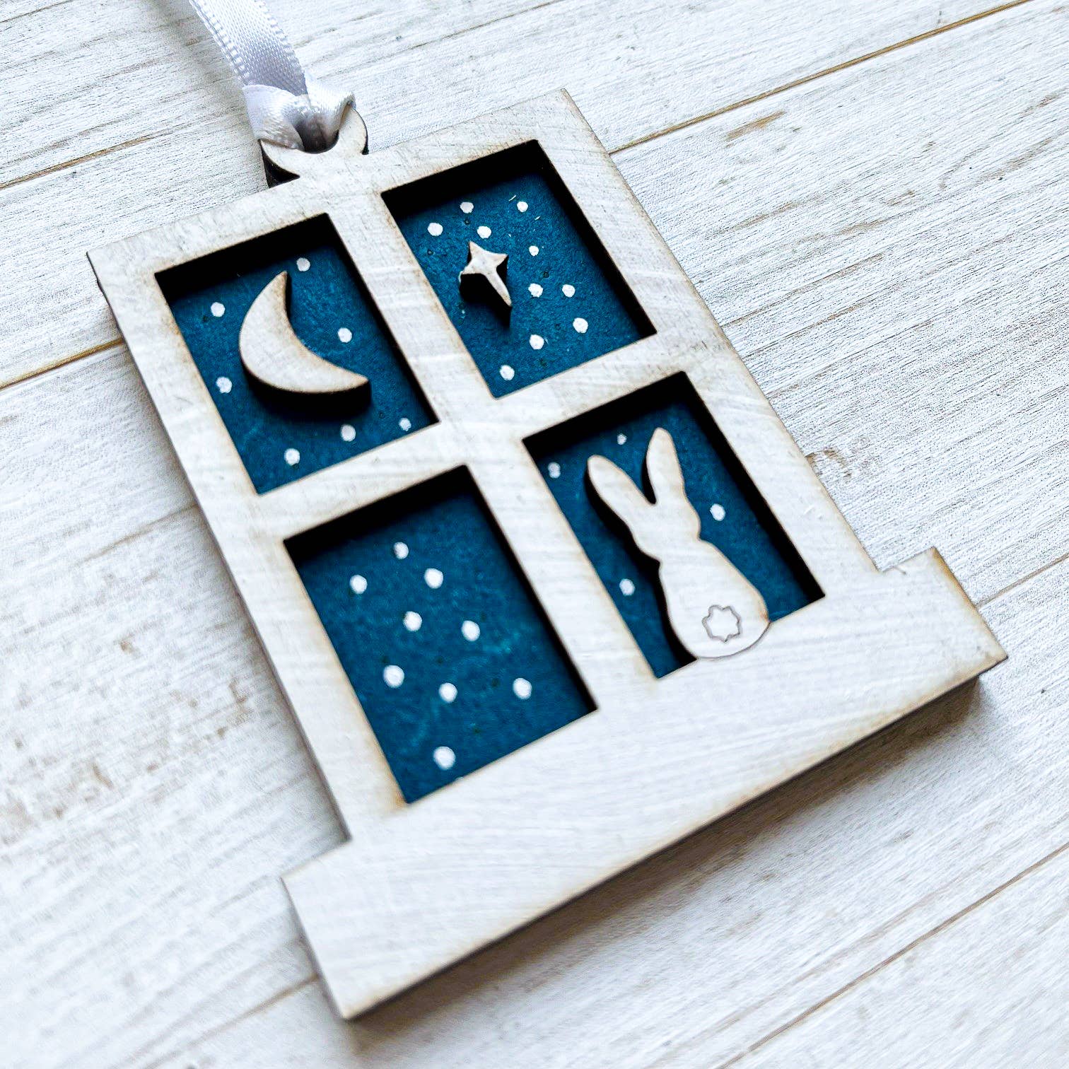 Bunny Rabbit Window Night Sky Wooden Christmas Decoration