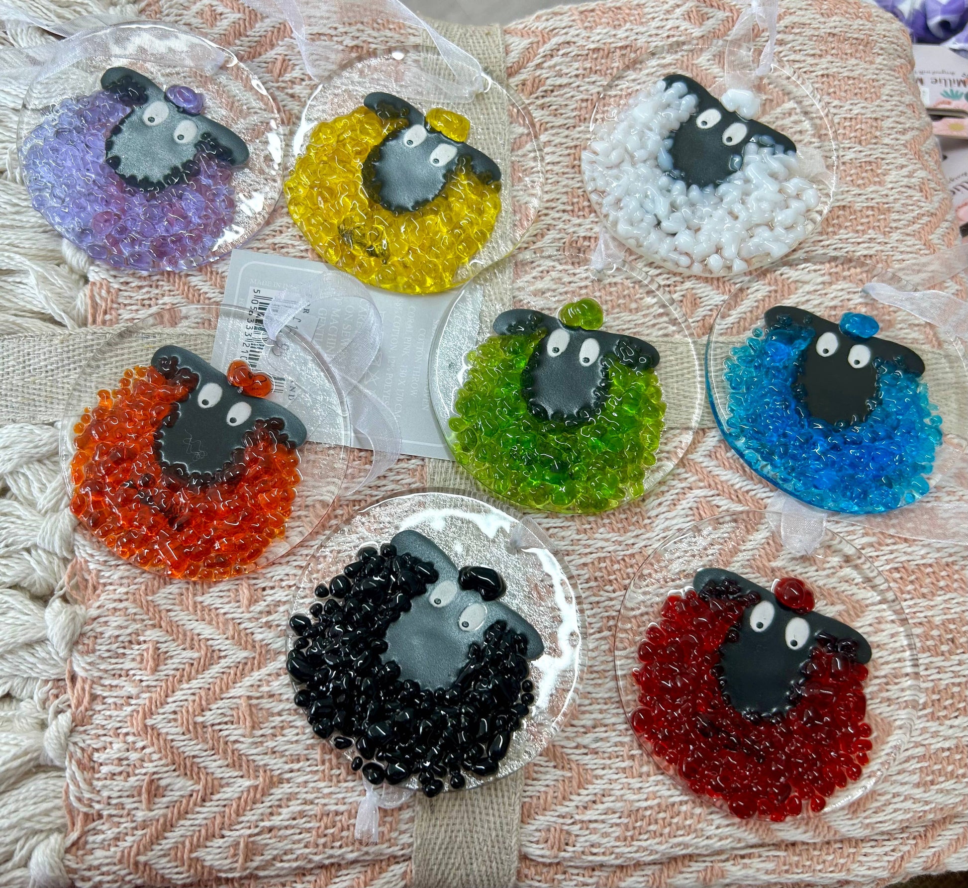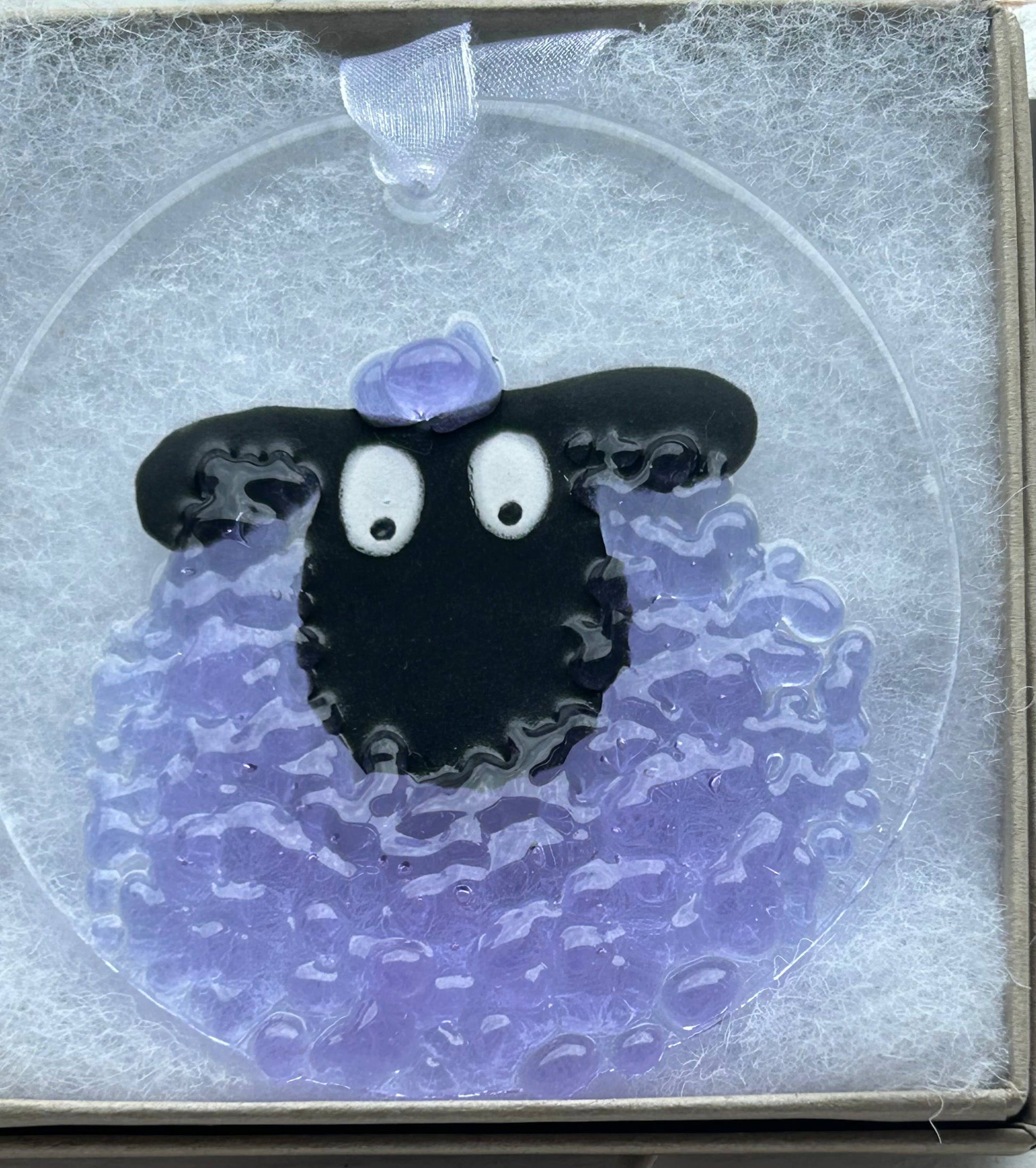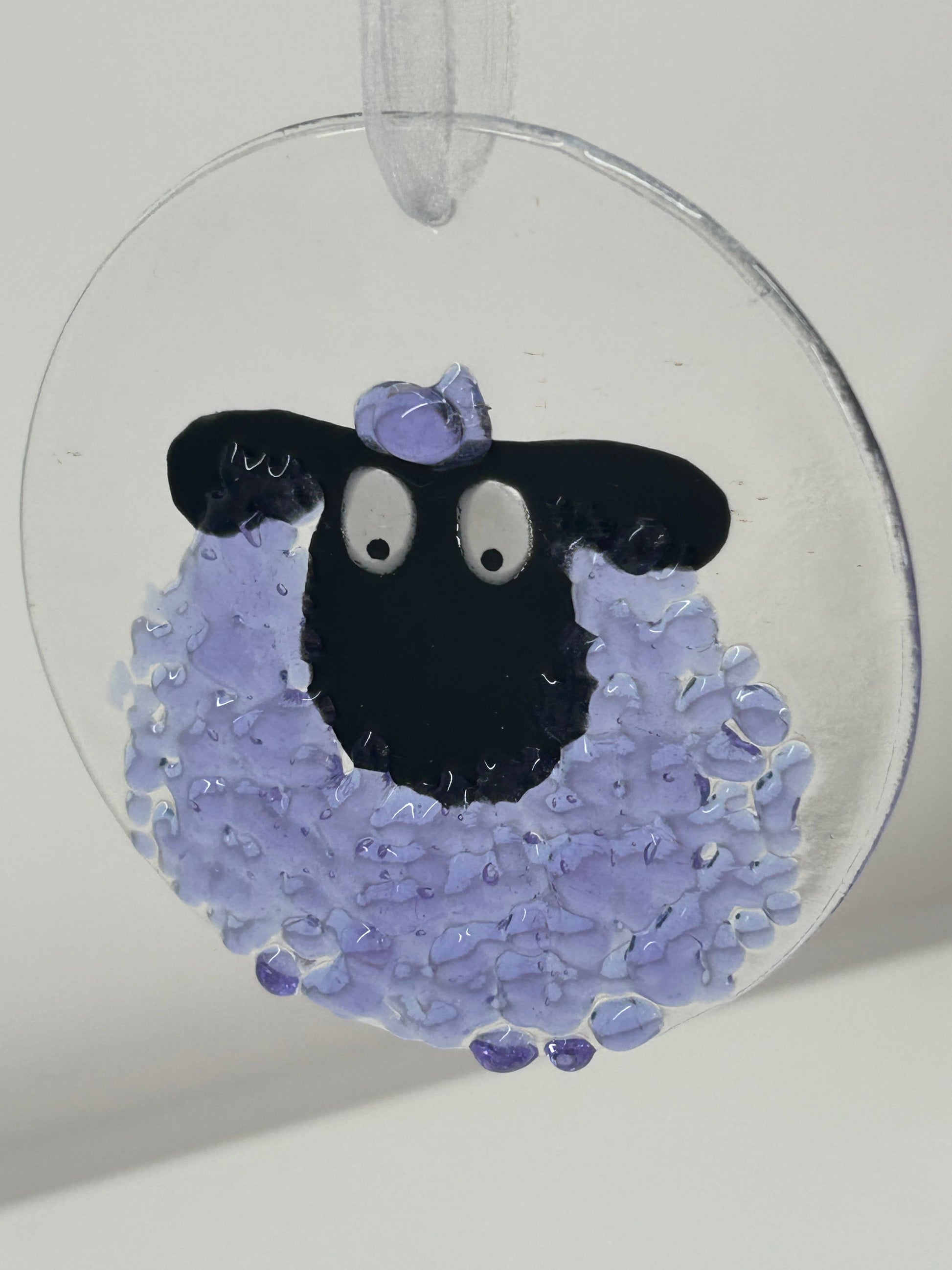 Fused Glass Round Sheep Hanging Ornament - Purple sheep
