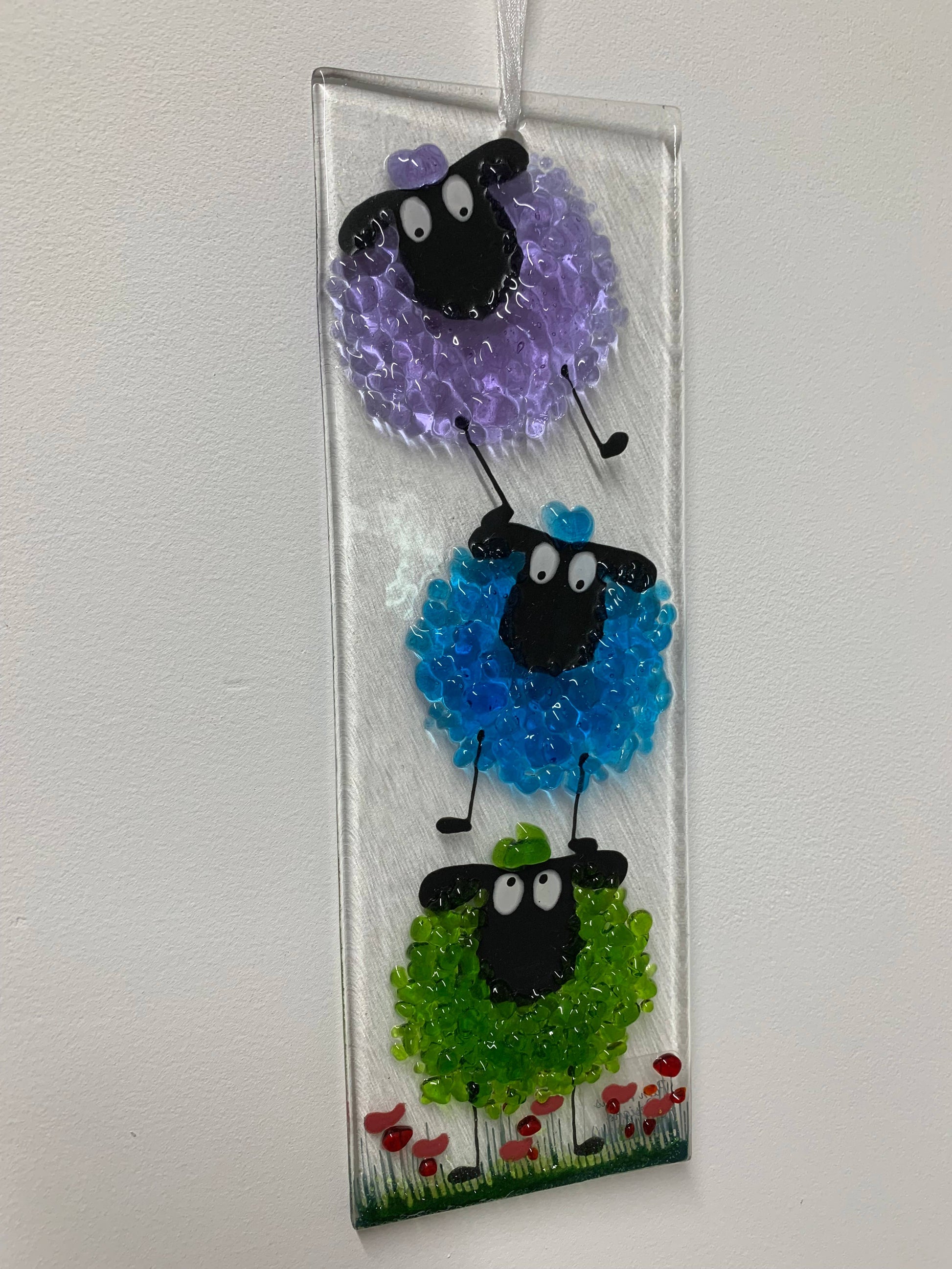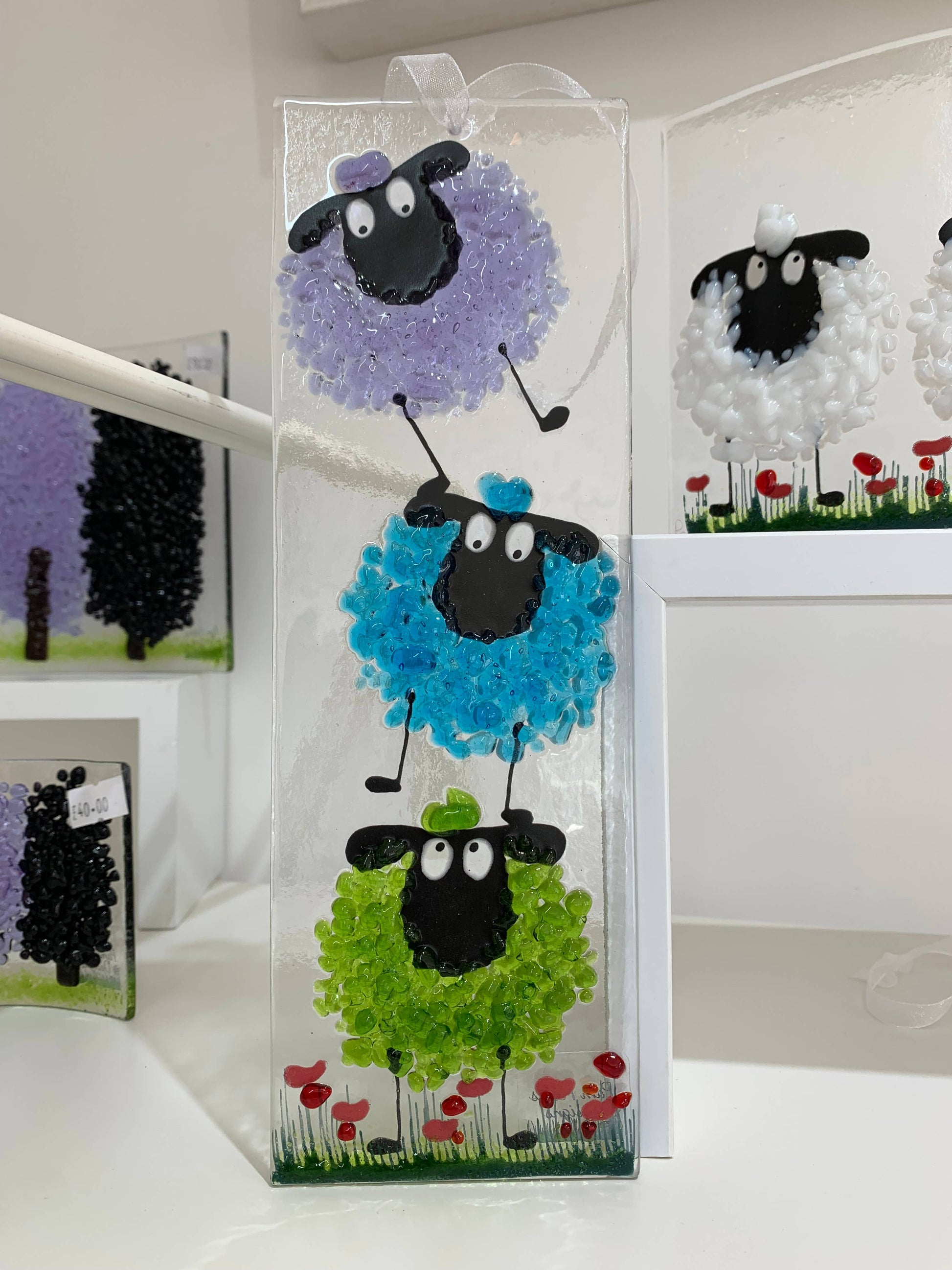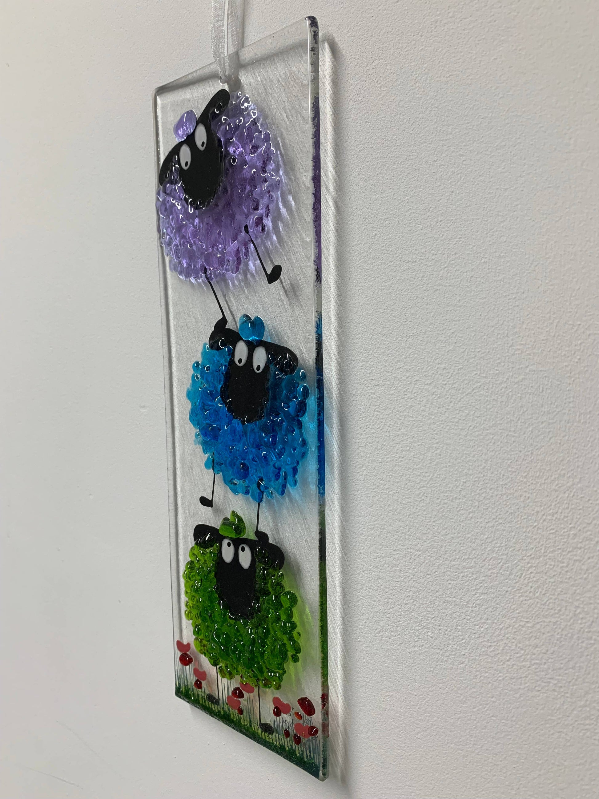 Fused Glass Sheep Hanging Ornament - Green, Blue & Purple