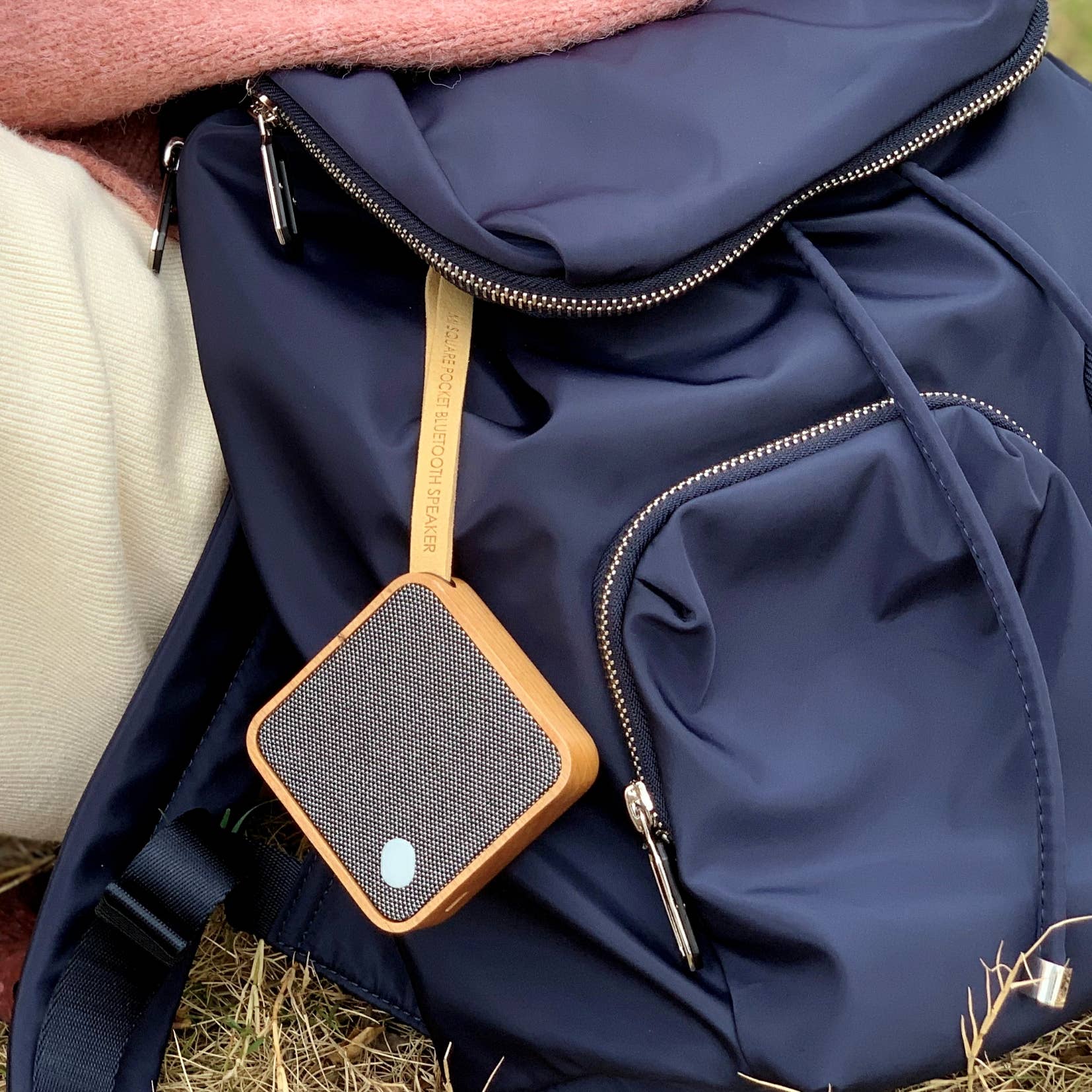 Made with solid natural Asian bamboo, German Cherry and American Walnut wood and powered by a long-lasting integrated rechargeable battery, the MI SQUARE Pocket Bluetooth Speaker is a very handy object to travel with, no matter where you go and what you do. It delivers you seriously great sound in a small and neat natural wood square.