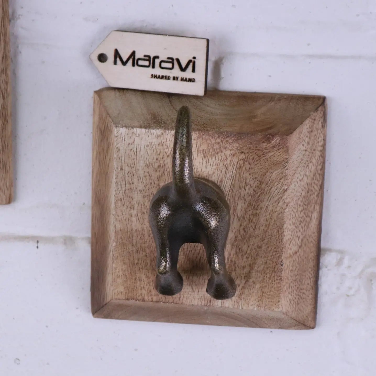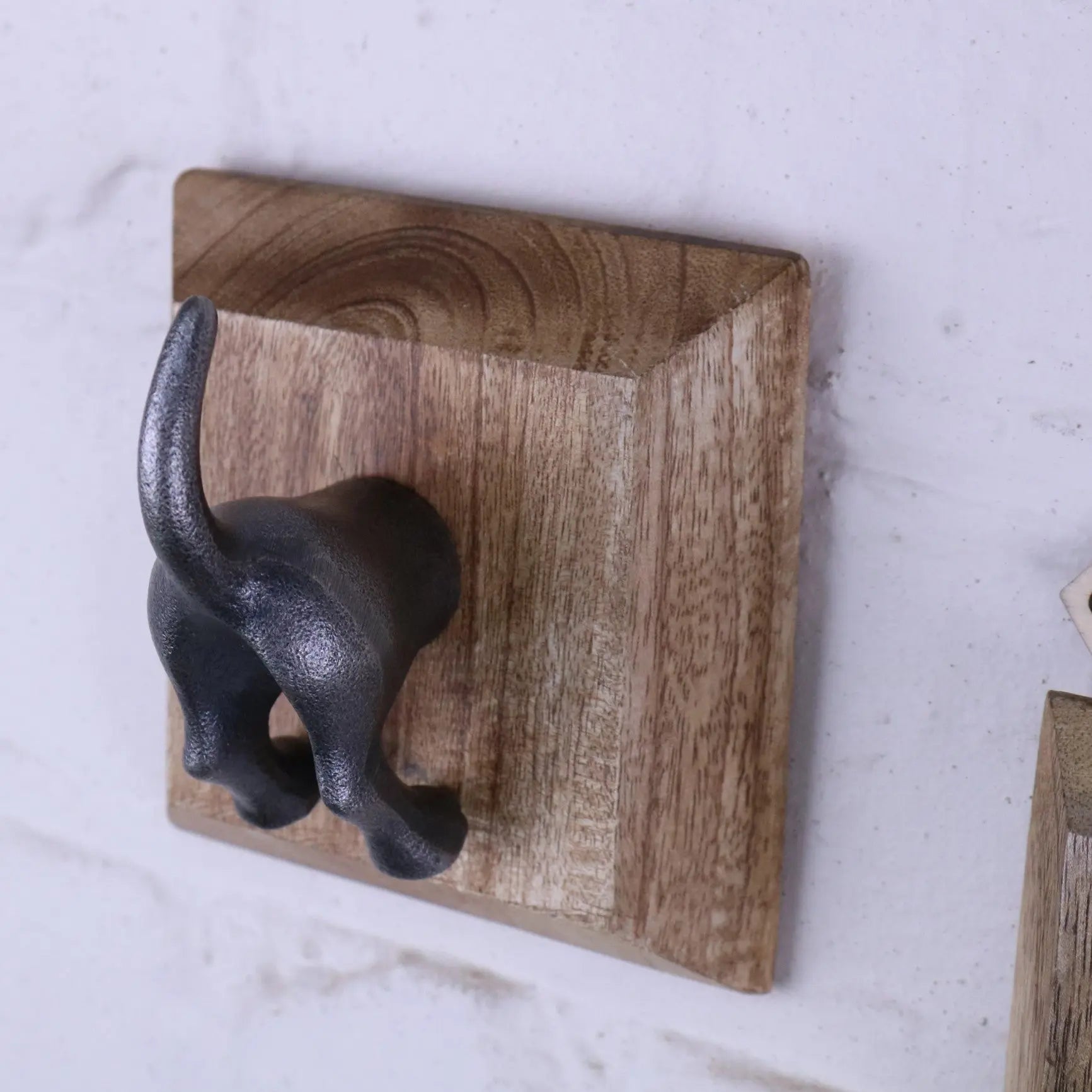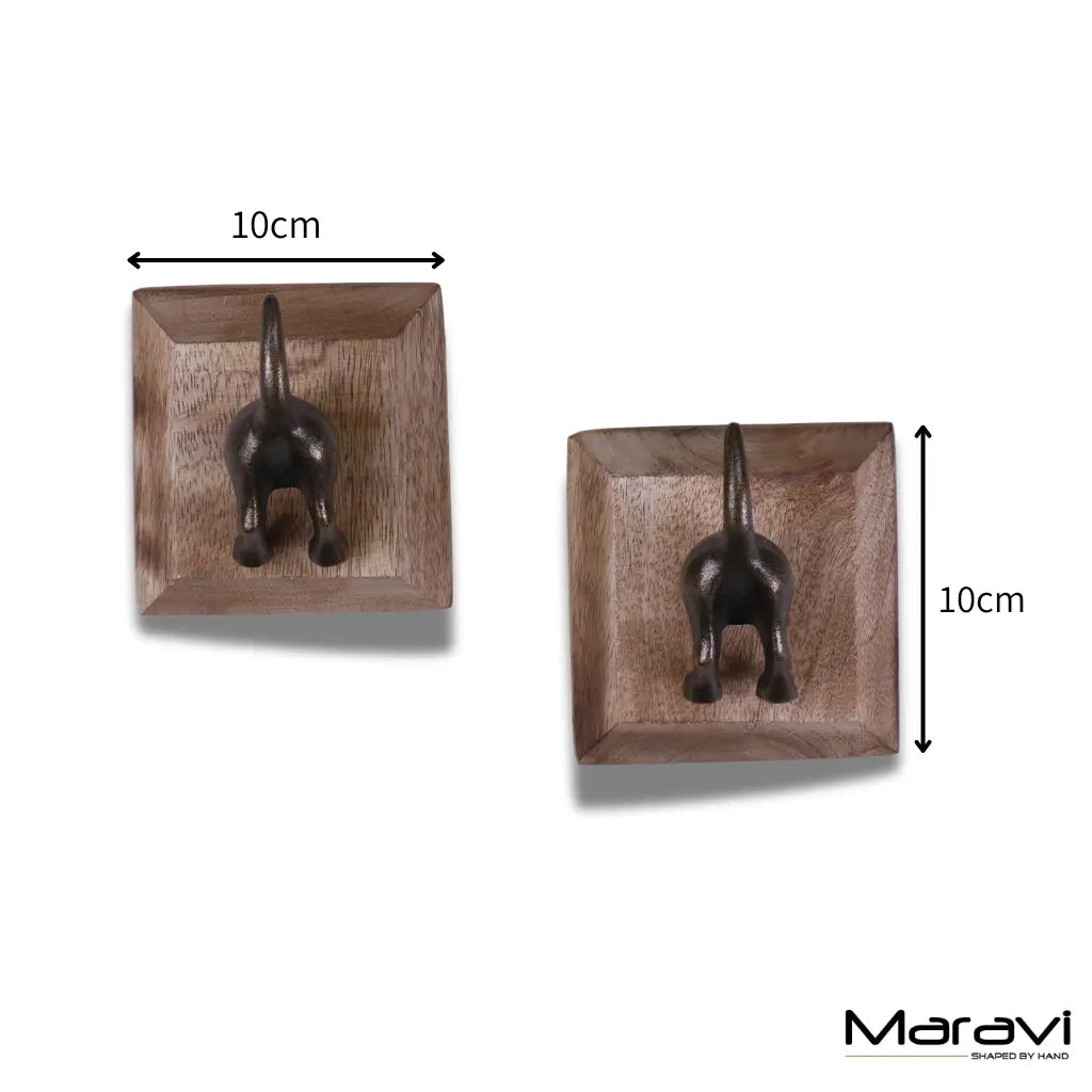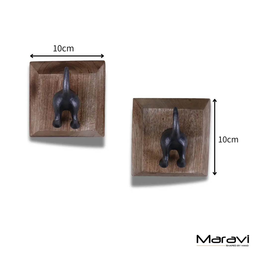 Each hook is mounted onto a solid mango wood backplate, blending rustic texture with whimsical design. Perfect for coats, bags, scarves, or even dog leads, these dog tail hooks are strong, reliable, and guaranteed to raise a smile.