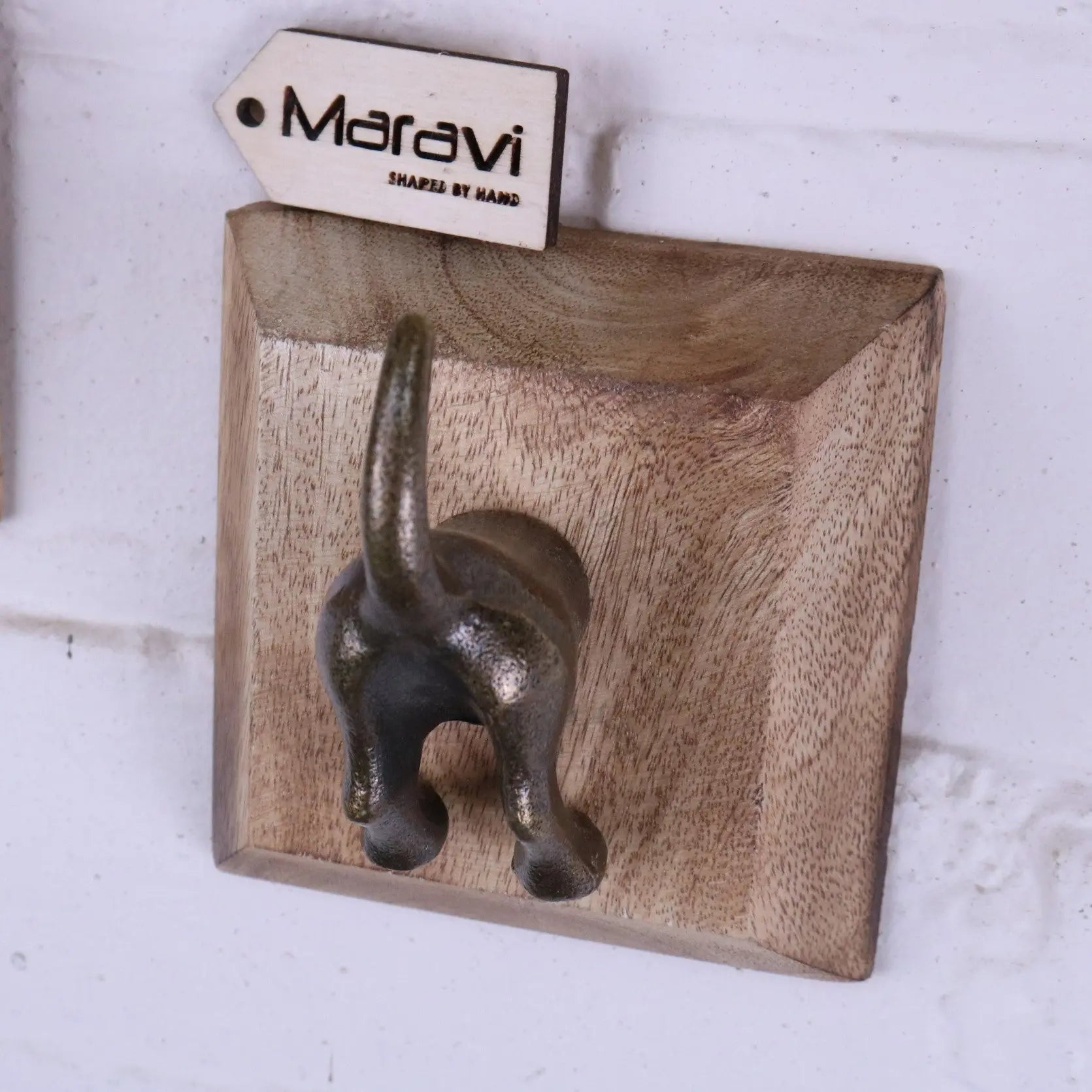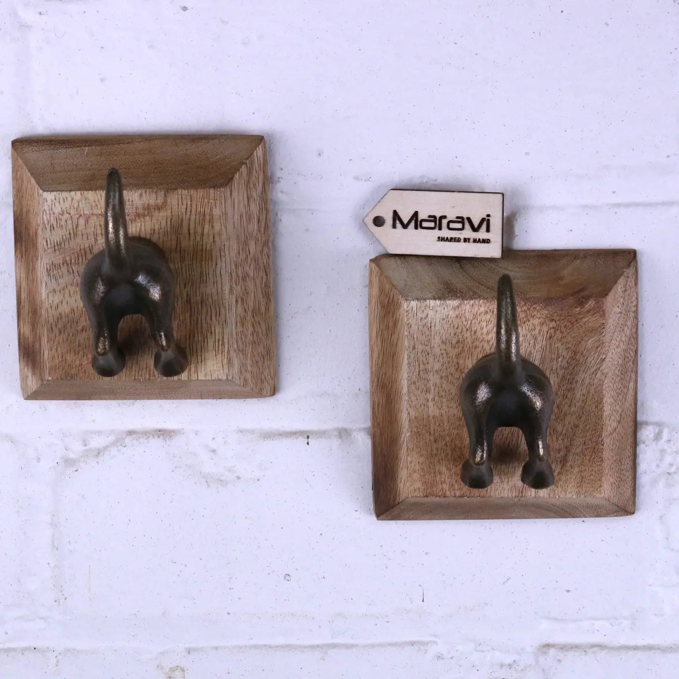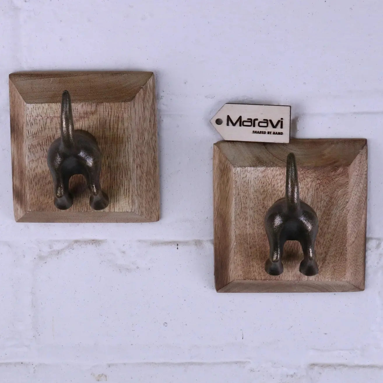 Each hook is mounted onto a solid mango wood backplate, blending rustic texture with whimsical design. Perfect for coats, bags, scarves, or even dog leads, these dog tail hooks are strong, reliable, and guaranteed to raise a smile.