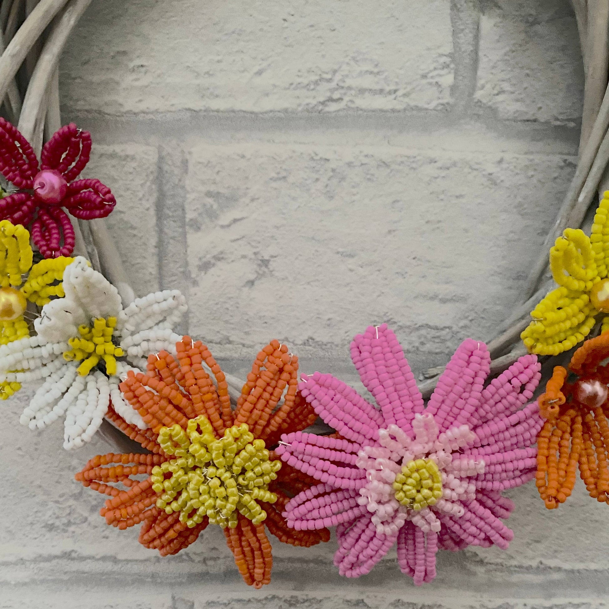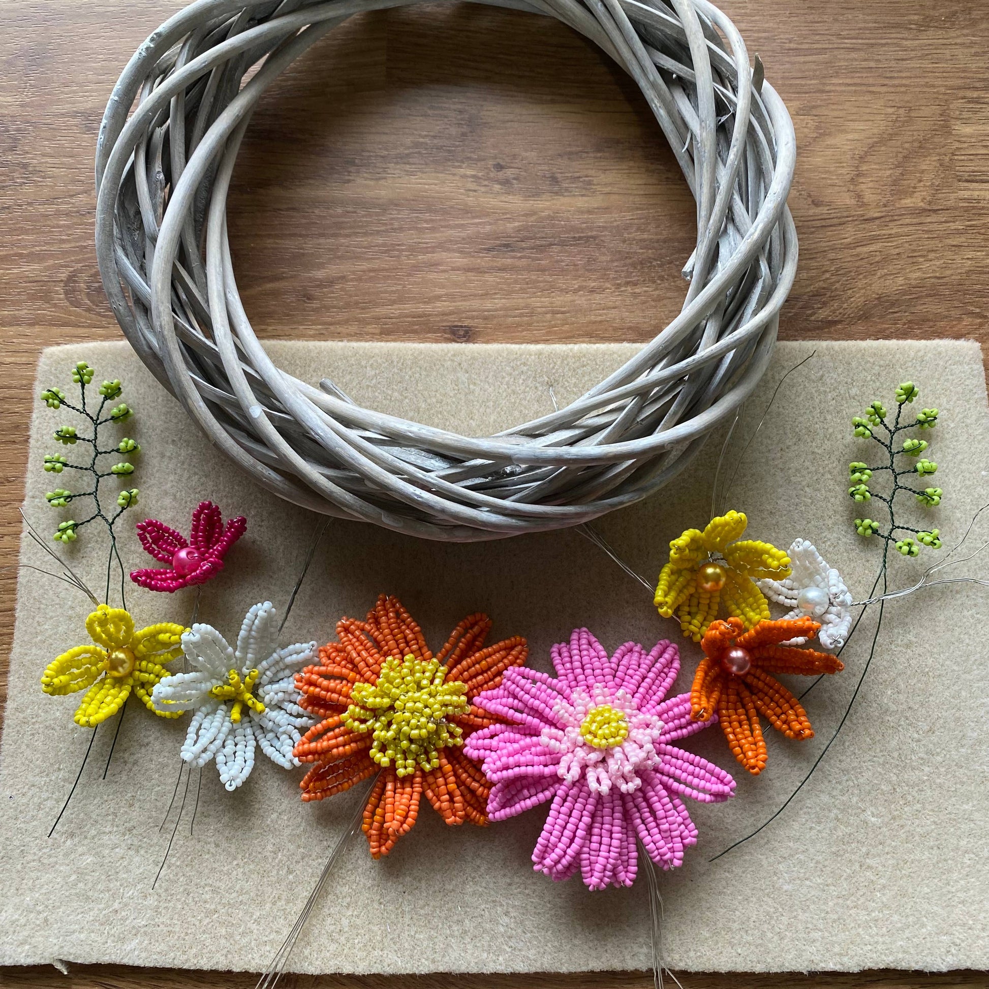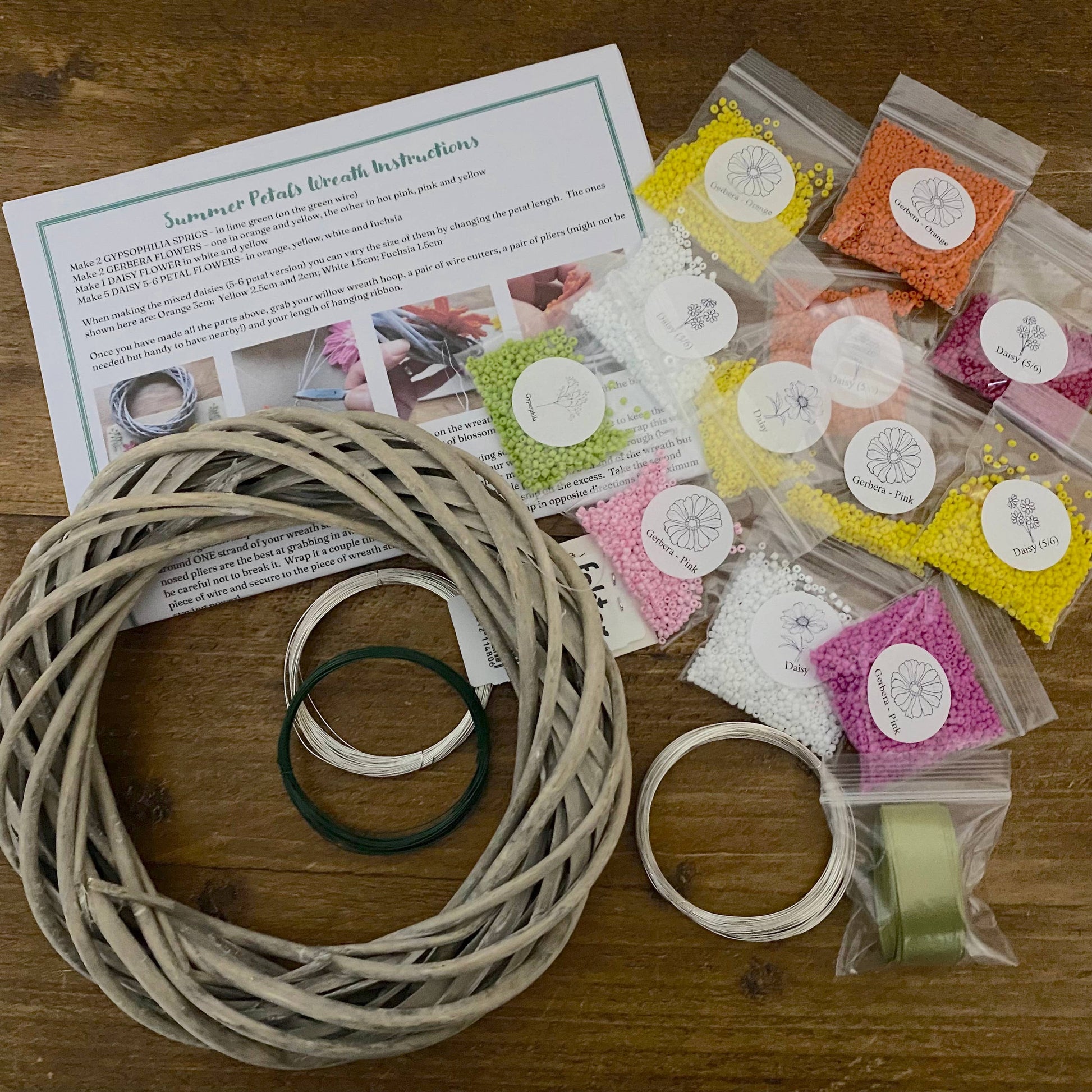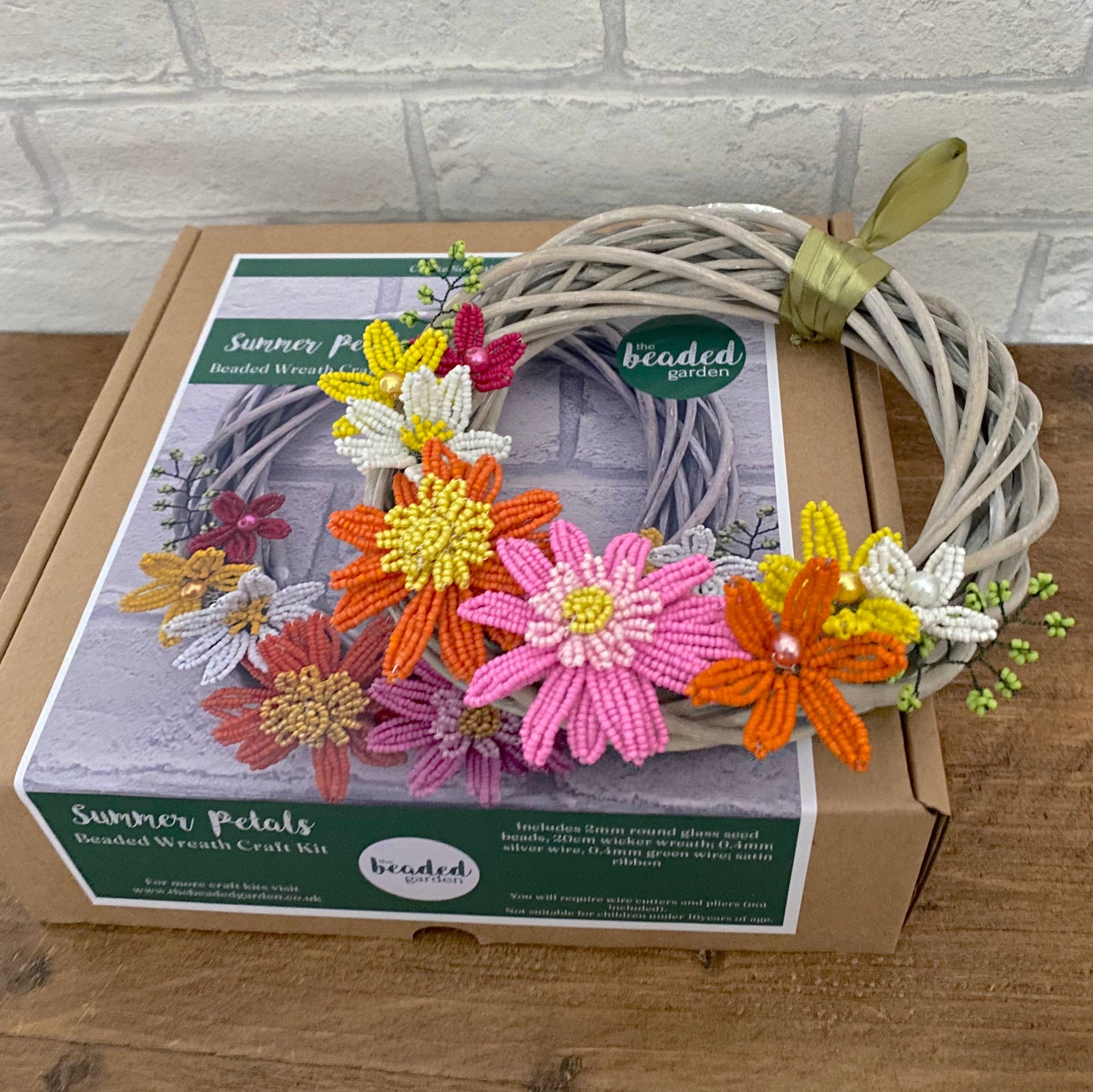 Summer Petals Beaded Flower Wreath Craft Kit. Please note: This wreath is not suitable for keeping outdoors in wet weather.