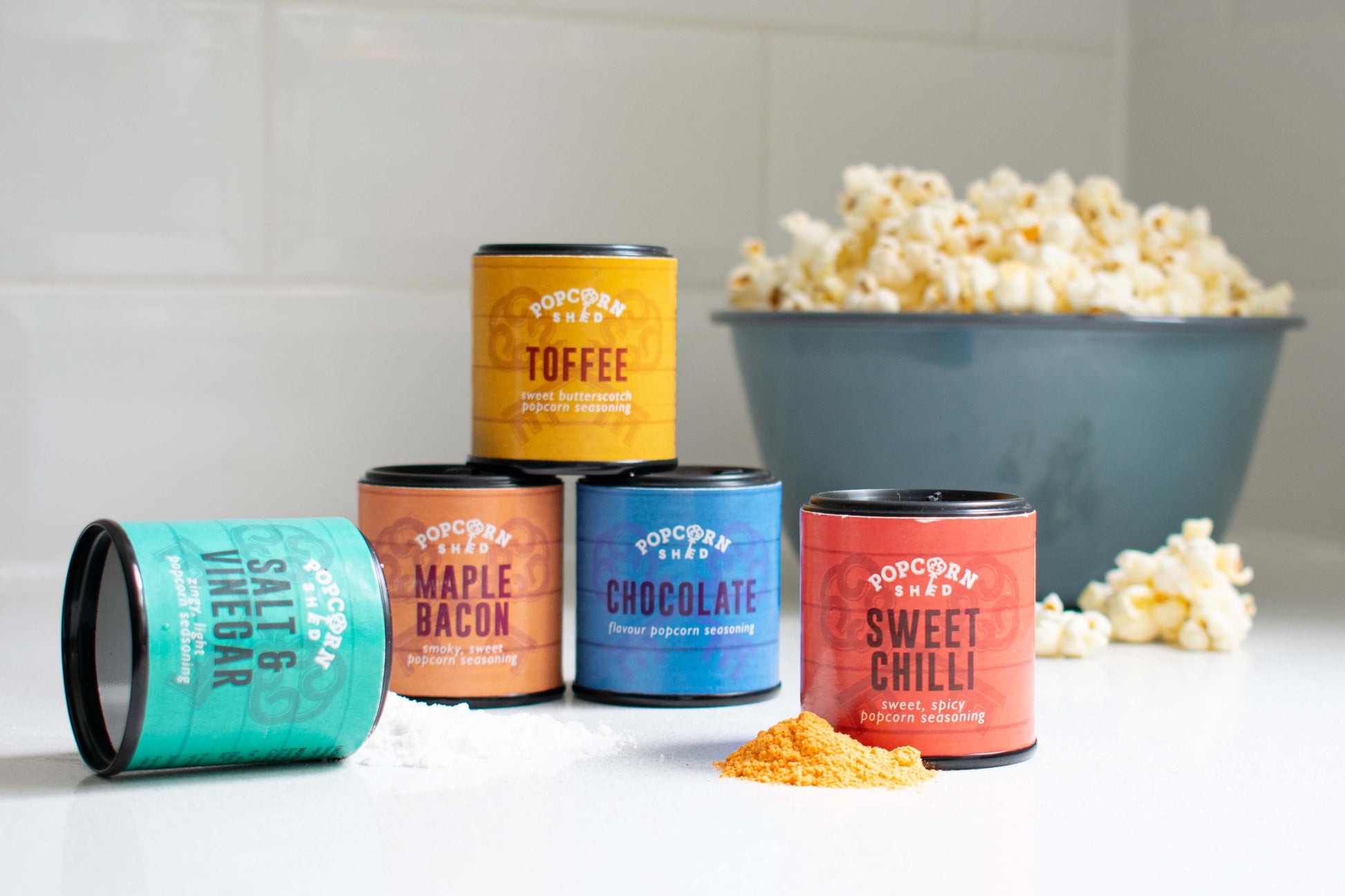 Here at Shedquarters we understand that no two kernels POP the same and everyone likes their popcorn flavoured differently. This is why we’ve created the Popcorn Shed Seasoning Kit - so you can POP, sprinkle and shake your popcorn to perfection, just how you like it!