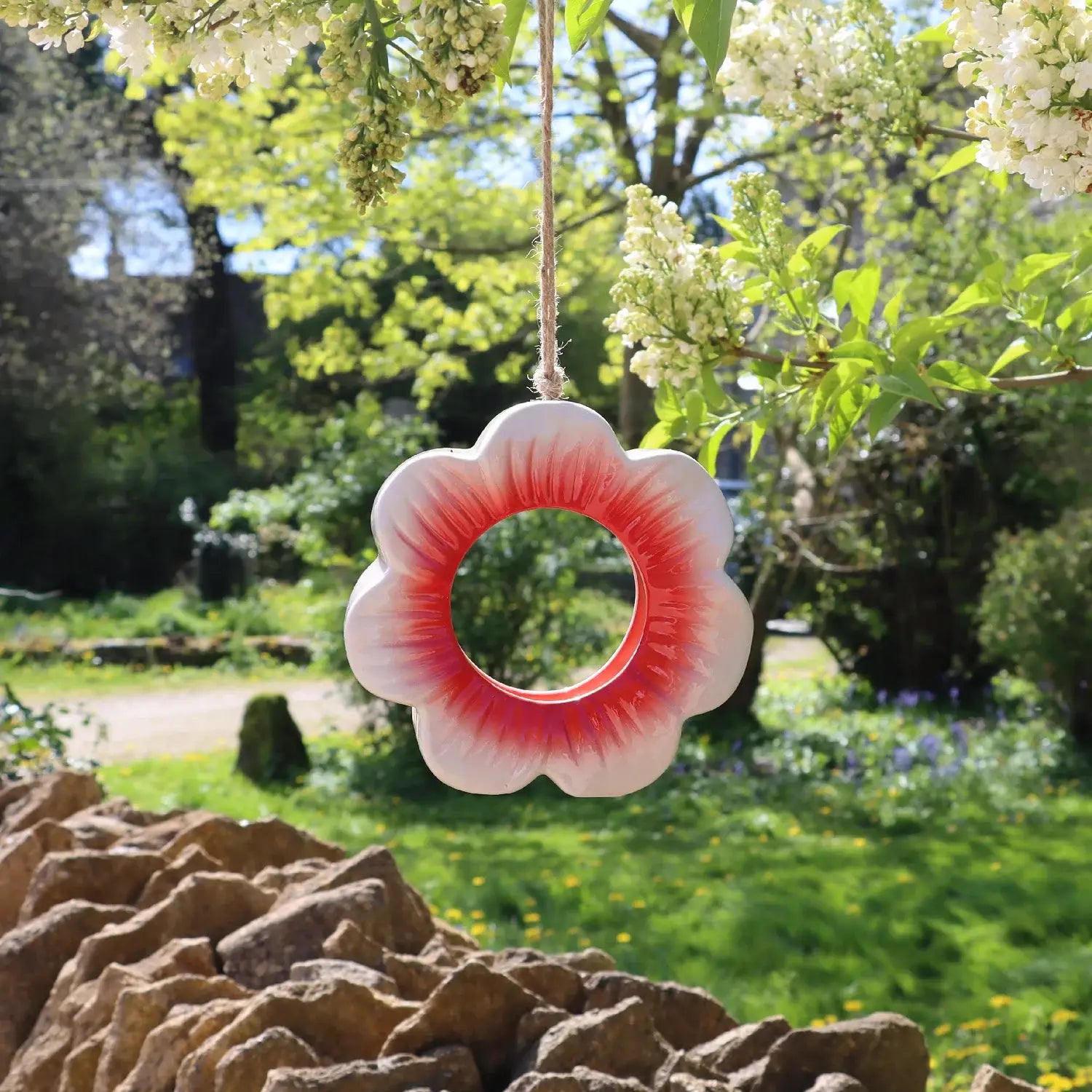 Wild Poppy Ceramic Hanging Bird Feeder